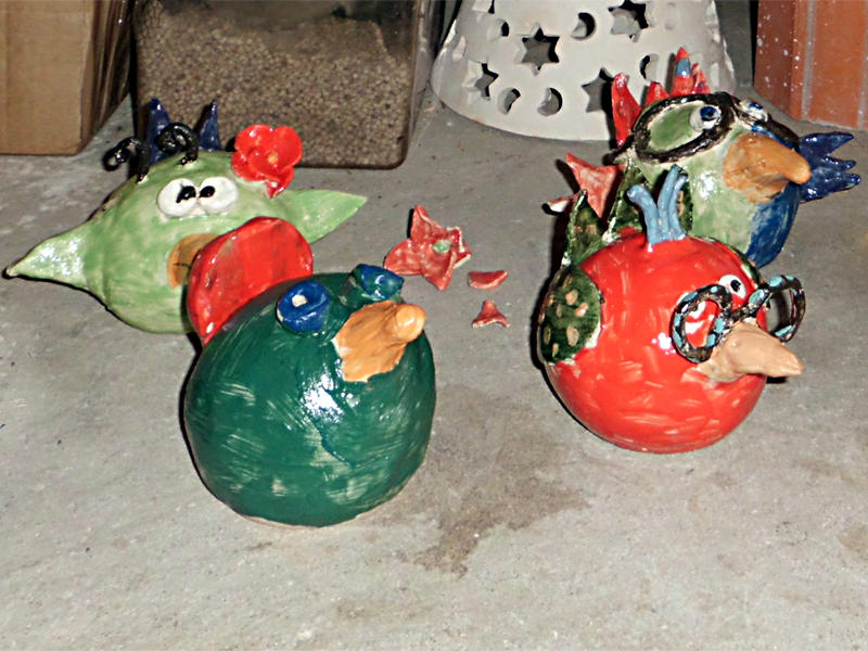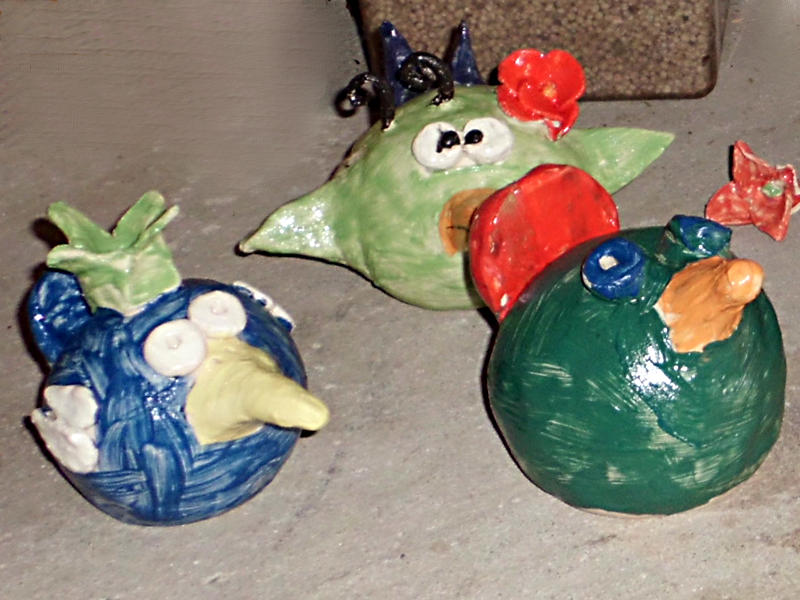 Zusammen mit dem Geburtstagskind und den eingeladenen Kindern gestalte ich was Schönes aus Ton. Die getöpferten Werke werden auch gleich von den Kindern mit Engobe-Farben angemalt und von mir dann noch farblos glasiert und zweimal gebrannt. Nach ca. 2-3 Wochen können die fertigen Kunstwerke abgeholt werden.